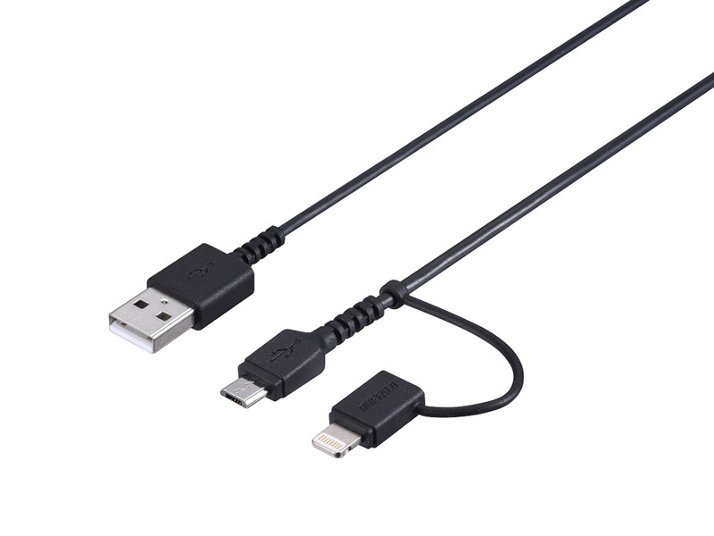 Lightning/USB microBに両対応する変換アダプター付きUSB2.0ケーブル