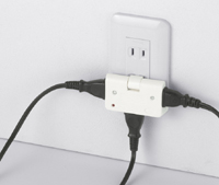 コンセントからの電源を3方向に分配するトリプルタップ。ケーブルがなく、コンセントに挿すだけで電源を手軽に増やせ、大変便利です。