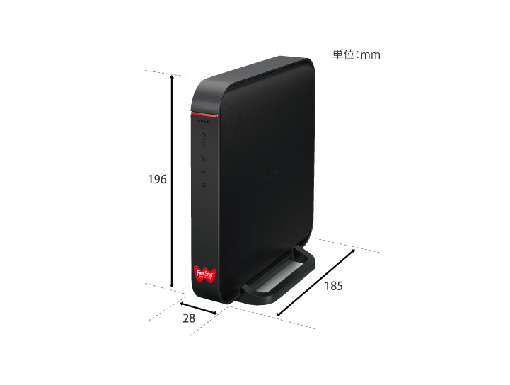 | 外形寸法(幅×高さ×奥行) | 28×185×196mm (アンテナ、スタンド含まず) ※本体のみ(突起部除く) |