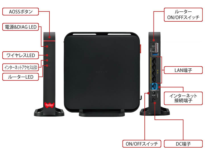 | アンテナ | 5GHz帯 2本(2本送信・2本受信)、2.4GHz帯 2本(2本送信・2本受信) | |
