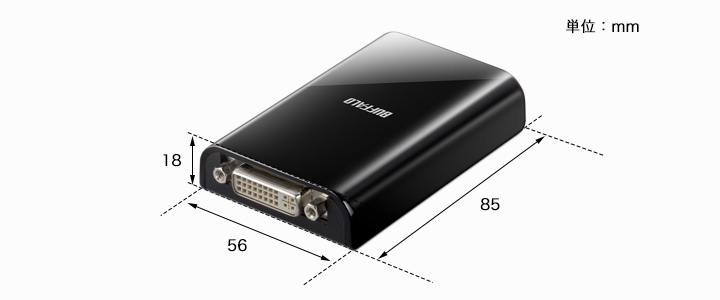 | 主な付属品 | 本体、D-sub変換アダプター、USB2.0ケーブル(1m)、ユーティリティーCD、取扱説明書、保証書(パッケージ内蓋に記載) | |