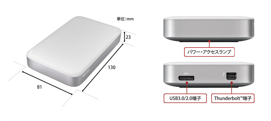 | 電源 | USBバスパワー、Thunderboltバスパワー | |