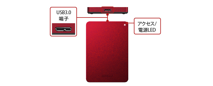 | 主な付属品 | USB3.0ケーブル(50cm)、取扱説明書 ※ユーティリティーはダウンロードにて配布 (ターボPC EX2、バックアップユーティリティー、イジェクトユーティリティー、バッファローツールズランチャー、ecoマネージャー、ディスクフォーマッター2、Easy File Sort、SecureLockMobile、おでかけロック、ウイルスバスター体験版、ファイナルデータ体験版) ※保証書はパッケージに記載 |