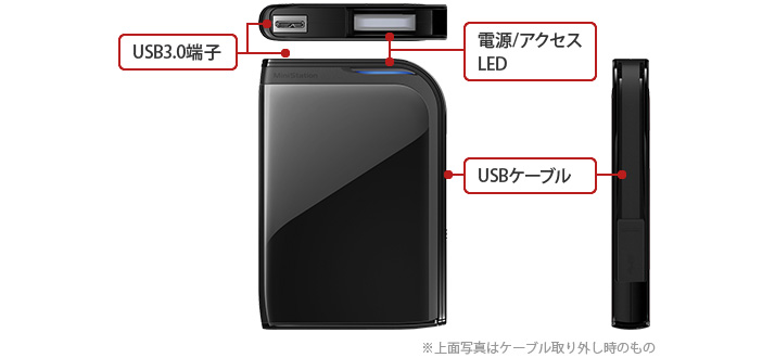 | 主な付属品 | USBケーブル(17cm)、USB延長ケーブル(50cm)、取扱説明書 ※ユーティリティーは製品本体内に保存 (バッファローツールズ[ターボPC EX2、バックアップユーティリティー、イジェクトユーティリティー、バッファローツールズランチャー、ecoマネージャー、ディスクフォーマッター2、Easy File Sort]、ドライブナビゲーター、Secure Lock Manager Easy、FireFox、Thunderbird、ウイルスバスター(体験版)、ファイナルデータ(試供版)、マニュアル、Adobe Acrobat Reader) ※保証書はパッケージに記載 |