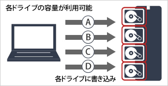 多くのデータが保存したいなら、全容量が無駄なく使えるスパニングモード