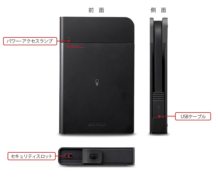 | 対応するパソコン | USB部 | USB3.0/2.0端子搭載のWindowsパソコン USB3.0/2.0端子搭載のMac(Intelプロセッサー搭載機のみ) バッファロー製USBインターフェースボード搭載のWindowsパソコン |