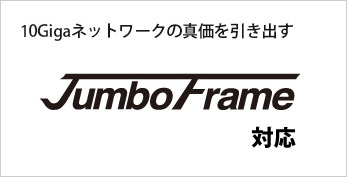 Ethernetの送信単位を大きくして、ネットワーク上の転送効率を向上させるJumbo Frameに対応。10GBASE-Tを生かした高速転送※を可能します。