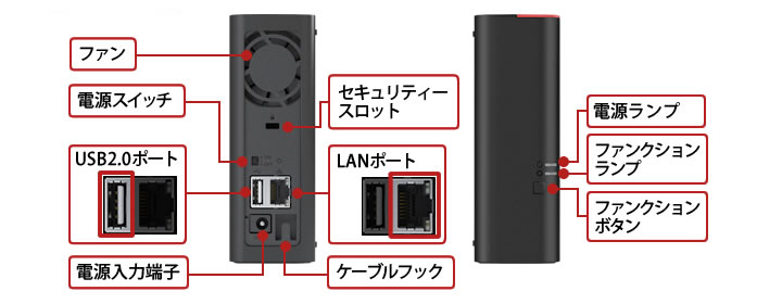 | 対応オプション(別売) | USBポート用 | 「NAS増設対応HDD製品一覧」をご覧ください。 ※パソコンとの接続には使用できません。 |