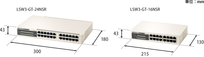 | 外形寸法(幅×高さ×奥行) | LSW3-GT-24NSR:W300×D180×H43mm ※本体のみ(突起部除く) |