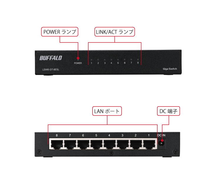 | サポート機能 | Auto-Negotiation (10/100/1000,Full/Half-Duplex)機能、Auto-MDI/MDIX機能、 IEEE802.3x フローコントロール、バックプレッシャー機能サポート、不良パケットフィルタリング機能、 おまかせ節電NEXT[通信の有無]、おまかせ節電[リンク]、LANケーブル長に応じた自動節電、 EAPOL(IEEE802.1X)フレーム透過、BPDUフレーム透過 |