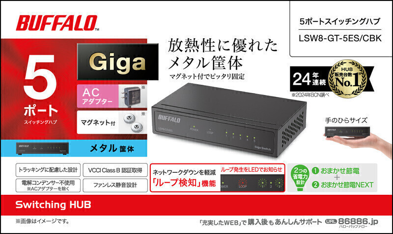 | サポート機能 | Auto-Negotiation (10/100/1000,Full/Half-Duplex)機能、Auto-MDI/MDIX機能、IEEE802.3x フローコントロール、バックプレッシャー機能サポート、不良パケットフィルタリング機能、ループ検出機能、おまかせ節電[リンク]、おまかせ節電NEXT[通信の有無]、EAPOL(IEEE802.1X)フレーム透過、BPDUフレーム透過 | |