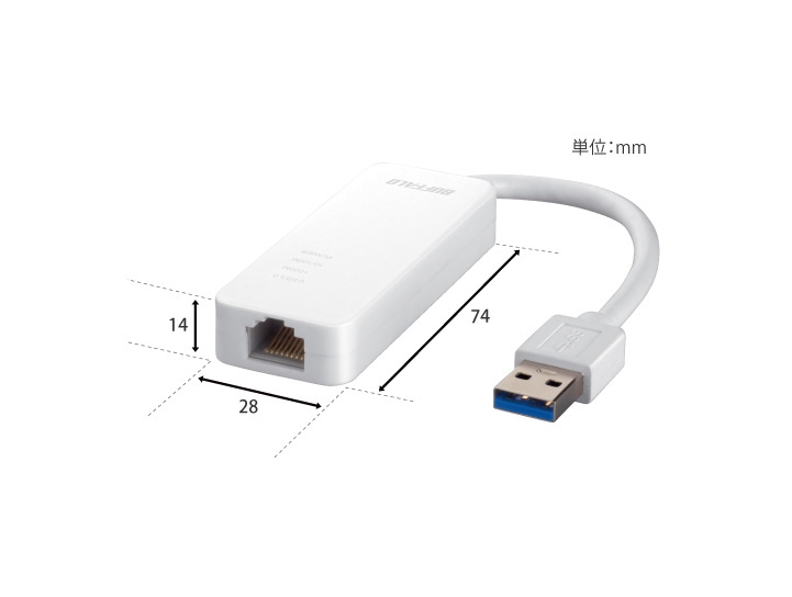 従来商品(LUA3-U2-AGT)も、LANポートは最大転送速度1Gbps(規格値)の「Giga」に対応していましたが、最大転送速度480Mbps(規格値)のUSB2.0インターフェースがボトルネックとなり、Gigaポートの性能を活かしきれていませんでした。 本商品では、最大転送速度5Gbps(規格値)のUSB3.0インターフェースを搭載することにより、Gigaポートの性能を最大限活かし、従来商品(LUA3-U2-AGT)と比べて約3倍※1の高速転送が可能となりました。