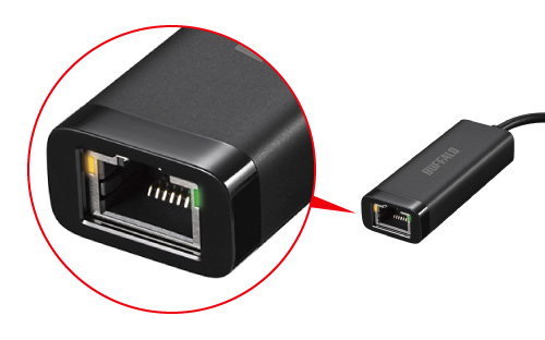 画像は説明のためLANケーブルの表示を省略しています。実際の商品ではLANケーブルを接続していないときはLEDランプが消灯します。