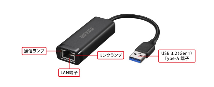 本商品をUSB Type-A端子に接続することで、LANポートのない機器で有線LANを使用することができます。Wi-Fiが不安定な場所で有線LANを使用したいときや、有線LAN環境しかないホテルや宿泊先などでインターネットを利用したいときに、便利にお使いいただけます。