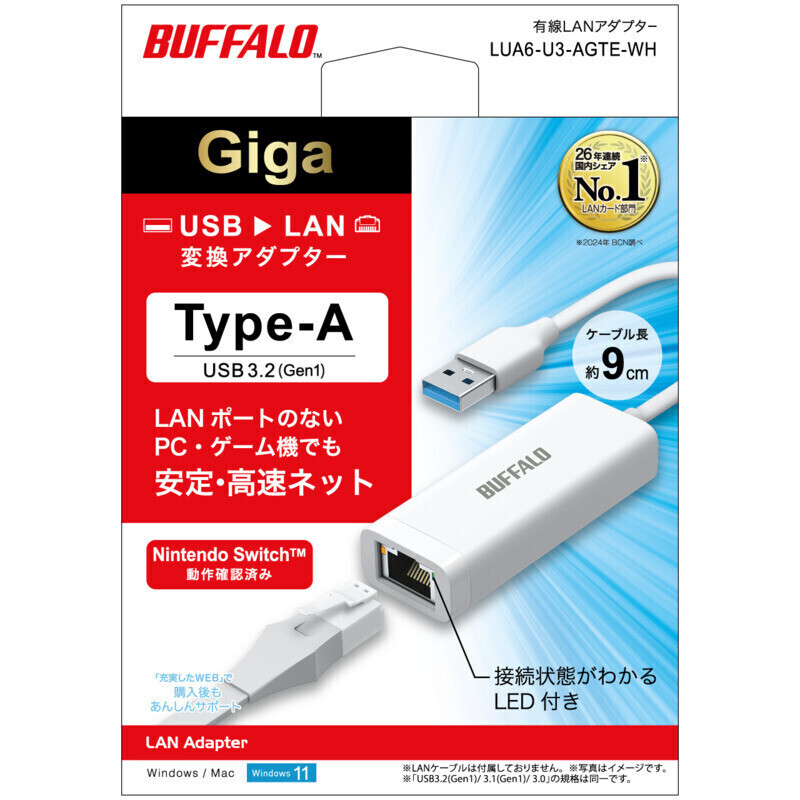 | JumboFrame | 最大9KB(ヘッダー14Bytes+FCS 4Bytes含む) ※JumboFrameはWindowsのみ対応しております。 ※Windows 10 (32 ビット)の場合、最大4KBになります。 ※MacOS、Nintendo Switchには対応しておりません。 ※ネットワーク環境によっては、JumboFrameの効果が得られない場合があります。 ※JumboFrameは出荷状態で無効になっています。有効にする場合は設定を行ってください。 |