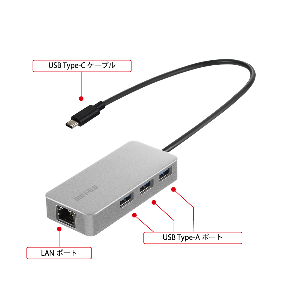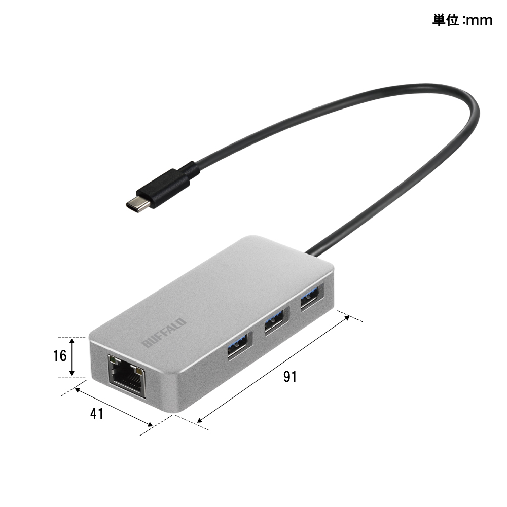 | 伝送速度 | 1000Mbps/100Mbps/10Mbps(規格値) ※USB 2.0以下のポートに接続した場合、伝送速度はUSBポートの通信速度に依存します。 | |