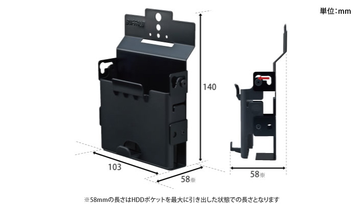 ポータブルHDDをすっきり取り付けられる
