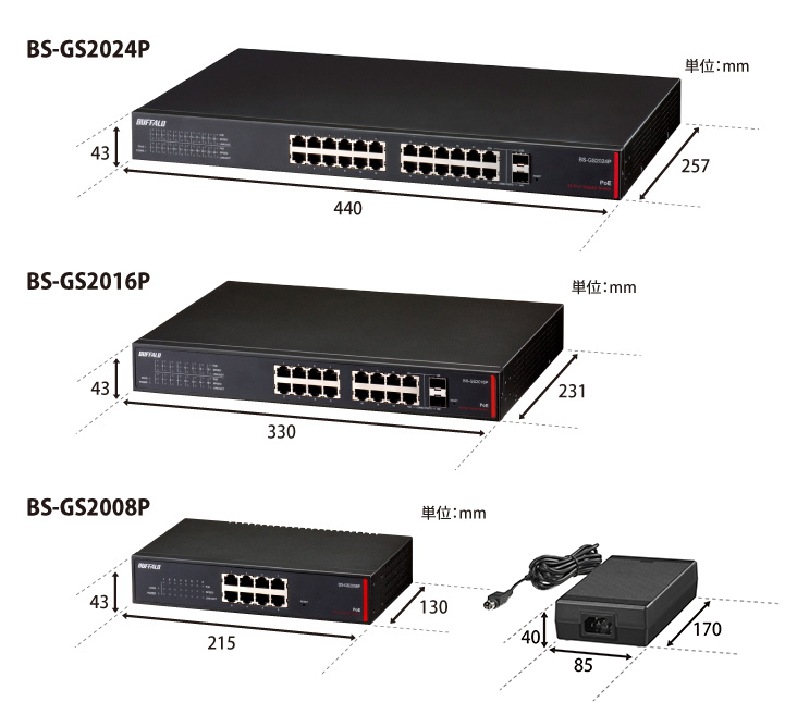 | 消費電力 | BS-GS2024P:最大248.9W BS-GS2016P:最大243.9W BS-GS2008P:最大117.9W |