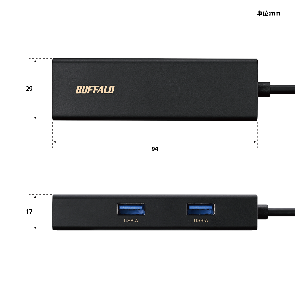 | 伝送速度 | 1000Mbps/100Mbps/10Mbps(規格値) ※USB 2.0以下のポートに接続した場合、伝送速度はUSBポートの通信速度に依存します。 |
