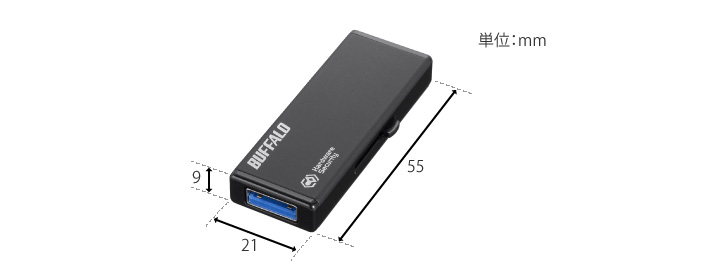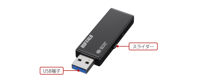 | 注意事項 | 実際にご使用いただける容量(ユーザー領域)は、システム領域があるため表示される容量より小さくなります。 本製品、およびその他のハードウェア暗号化機能搭載製品を複数同時に使用することはできません。 |