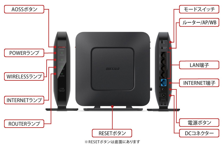 | 伝送速度 | LANポート:最大1000Mbps×4 INTERNETポート:最大1000Mbps×1 |