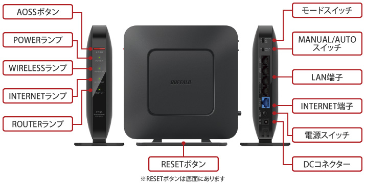 | 伝送速度 | LANポート:最大1000Mbps×4 INTERNETポート:最大1000Mbps×1 |