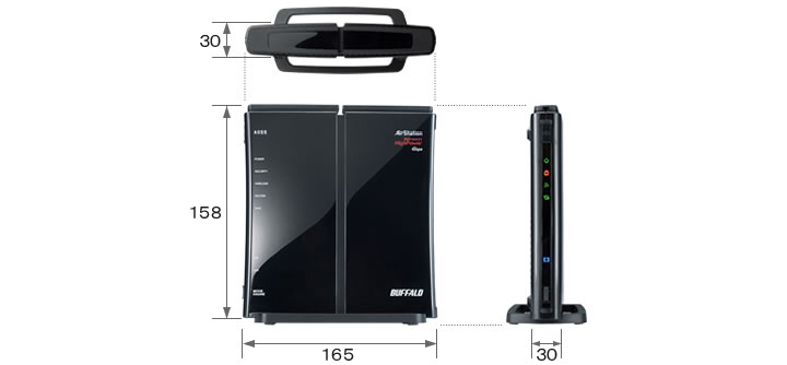 | 主な同梱品 | WZR-HP-G301NH | 本体 縦置き用スタンド 壁取付け用ねじ2本 LANケーブル(ストレート、2m) ACアダプター エアナビゲータCD(“エアナビゲータ”、“クライアントマネージャV”、“クライアントマネージャ3”、“AOSSアシスタント”、マニュアル) マニュアル / 保証書 |