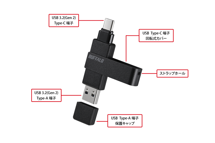 USB Type-A端子には保護キャップを装備、安心して持ち運ぶことができます。