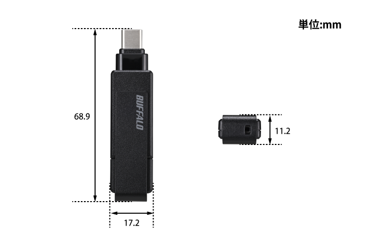 | 外形寸法(幅×高さ×奥行) | 17.2×11.2×68.9mm ※本体のみ(突起部除く) |