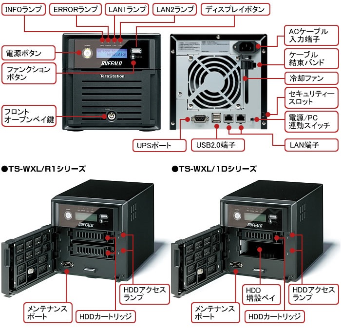 TS-WXL/1DシリーズはHDDを増設することにより、RAIDに対応可能です。詳しくはこちらをご覧ください。