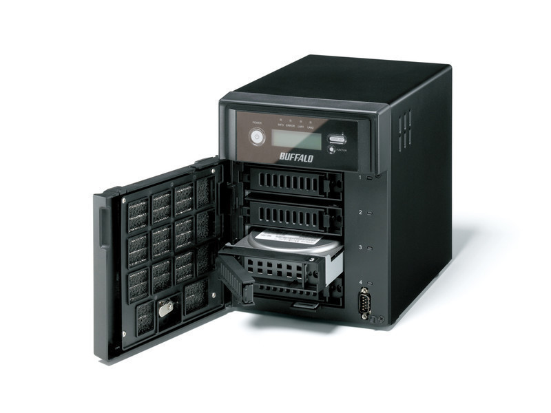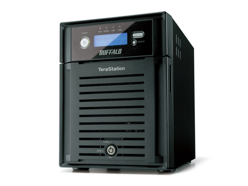 | 製品構成 | 本体 LANケーブル(ストレート、2m) ACケーブル(1.6m) 3極-2極変換アダプター フロントパネル開閉用鍵(2個) ユーティリティーCD(Tera Navigator(テラナビゲーター)、NAS Navigator(NASナビゲーター)2、簡単バックアップ、EXT3リーダー、設定保存復元ツール、ファイル共有セキュリティレベル変更ツール、設定ガイド、Adobe Reader) 保証書 |