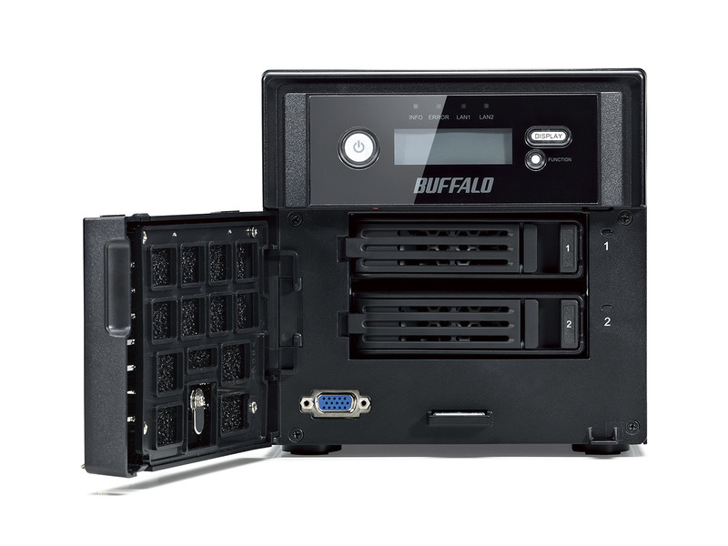 | 主な付属品 | LANケーブル(カテゴリー5e、ストレート、2m) 、ACケーブル(1.6m)、3極-2極変換アダプター、フロントパネル開閉用鍵(2個)、ユーティリティーCD(Tera Navigator(テラナビゲーター)、NAS Navigator(NASナビゲーター)2、NovaBACKUP、設定ガイド、Adobe Reader)、取扱説明書、保証書 | |