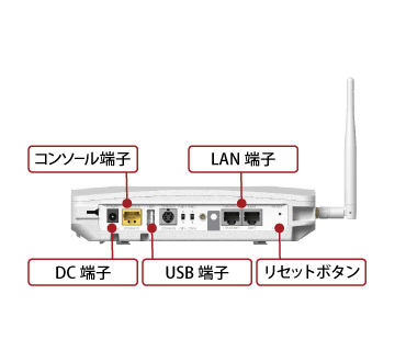 | サポート機能 | ローミング支援機能(IEEE802.11k/v/r、低RSSI切断)、AP間送信出力自動調整機能、DFS障害回避機能、公平通信制御機能、干渉波自動回避機能、電波出力調整、電波混雑防止機能、APSD、DTIM、Beacon Period、QoS、ロードバランス(接続台数制限)、MAC-RADIUS認証、内蔵RADIUSサーバー機能、Proxy ARP(プロキシ・アープ)機能、ゲストポート機能 | |
