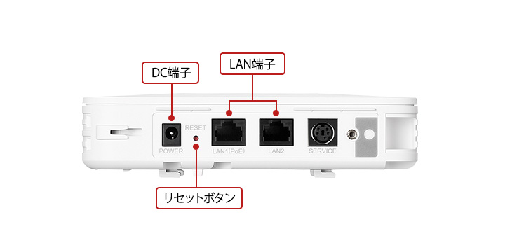 | サポート機能 | 干渉波自動回避機能、リモート管理機能、電波出力調整、電波混雑防止機能、APSD、DTIM、Beacon Period、QoS、ロードバランス(接続台数制限)、MAC-RADIUS認証、Proxy ARP(プロキシ・アープ)機能、DHCPサーバー | |