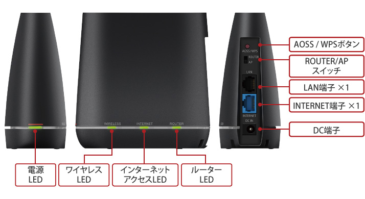 | 主な付属品 | LANケーブル(ストレート/カテゴリー5e:50cm)、ACアダプター、取扱説明書 | |