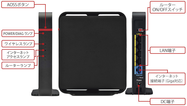 本商品には、INTERNET ポートに最大伝送速度1,000MbpsのGigaポートを搭載。INTERNET ポートが100Mbpsのポートの場合では、活かしきれない11acの速度を、十分に活かしたWi-Fi通信ができます。スマートフォンでの動画視聴もコマ落ちすることなくスムーズに再生することが可能です。