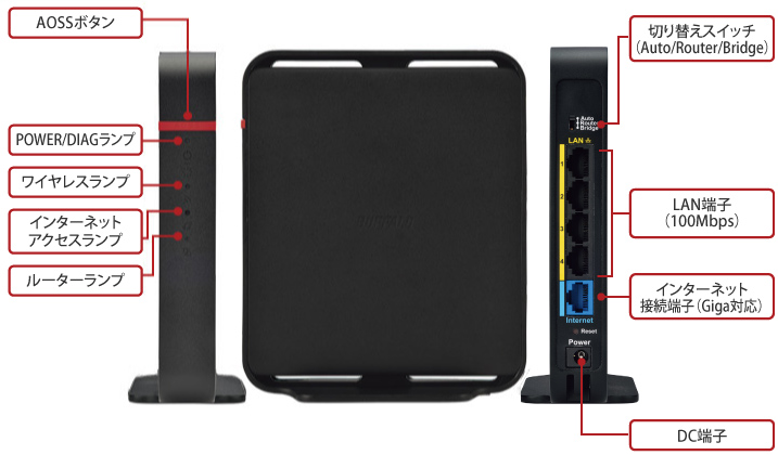 ルーター/ブリッジ自動切り替え機能を搭載で、インターネット接続がより簡単に。お使いのネットワーク環境のルーター機能の有無を自動判別して、無線LAN親機のモードを切り替えます。手動でも切り替え可能なスイッチを本体背面に搭載。