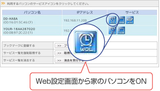 Wake On LAN(WOL)でパソコンの電源を遠隔操作可能。リモートアクセス時に外から家のパソコンの電源ONが行えるので、パソコンの常時稼働は不要。リモートアクセスが省エネでご利用いただけます。