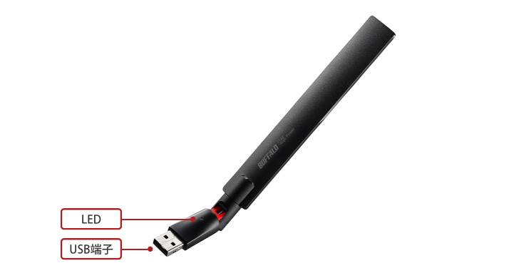 本商品は、11acに対応した無線LAN子機です。パソコンのUSB端子に接続することで、最大433Mbps(規格値)の高速Wi-Fi通信が可能になります。11n搭載の無線LAN内蔵パソコン(300Mbps)と比較して転送速度(規格値)で最大約1.4倍高速化。光通信によるインターネットを利用している方や、ハイビジョン映像をWi-Fi経由で視聴したい方に11acを手軽に導入していただけます。USB子機だから、パソコンに挿したまま移動して、家中どこでも11ac速度の高速Wi-Fiが利用できます。