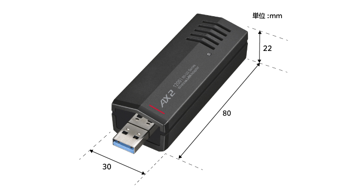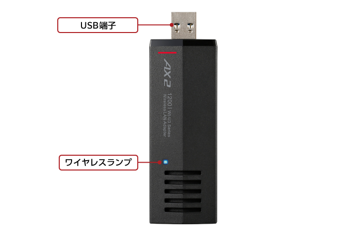 ※ 記載の通信速度(理論値)は、本商品をUSB 3.2(Gen1)端子に接続し、ルーター側がWi-Fi 6(11ax)に対応している場合です。