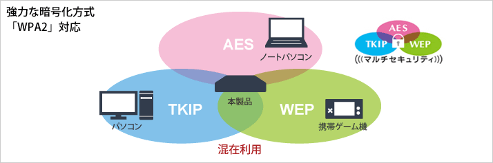 「マルチセキュリティー」機能で異なる無線LAN暗号化レベルを混在利用
