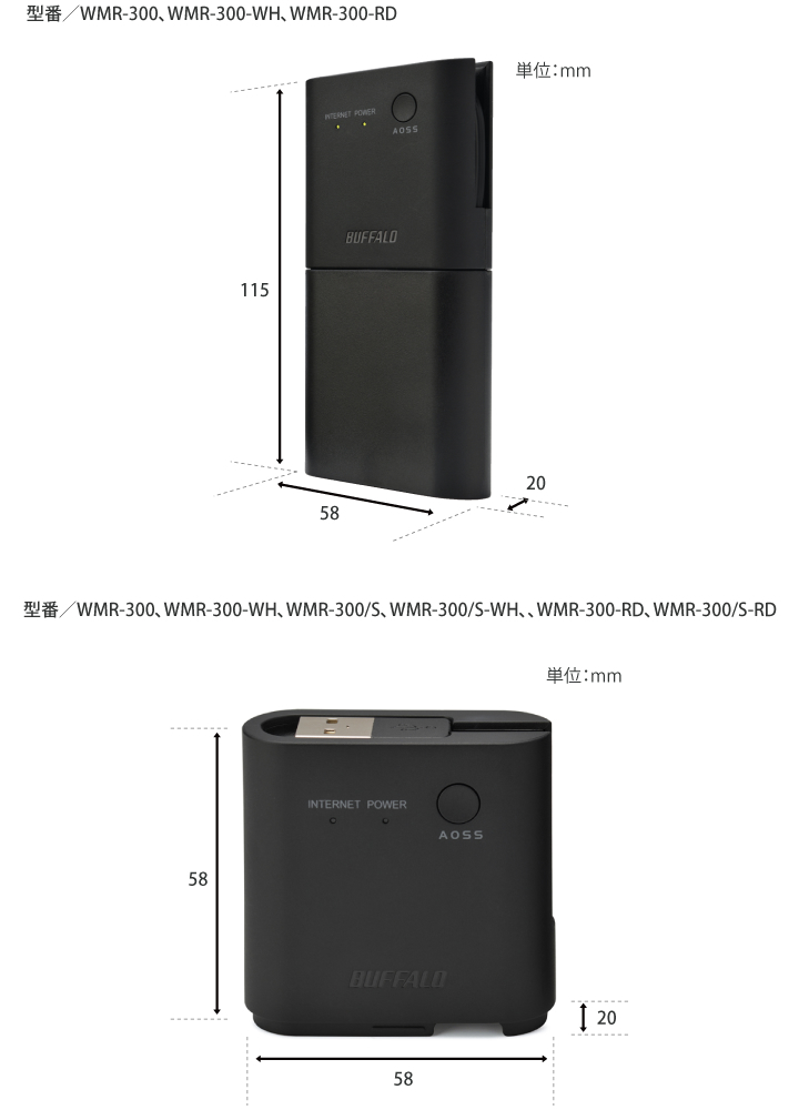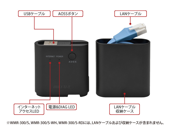 | WMR-300・ WMR-300-WH・ WMR-300-RD | LANケーブル、収納ケース、取扱説明書、保証書(取扱説明書に記載) | |