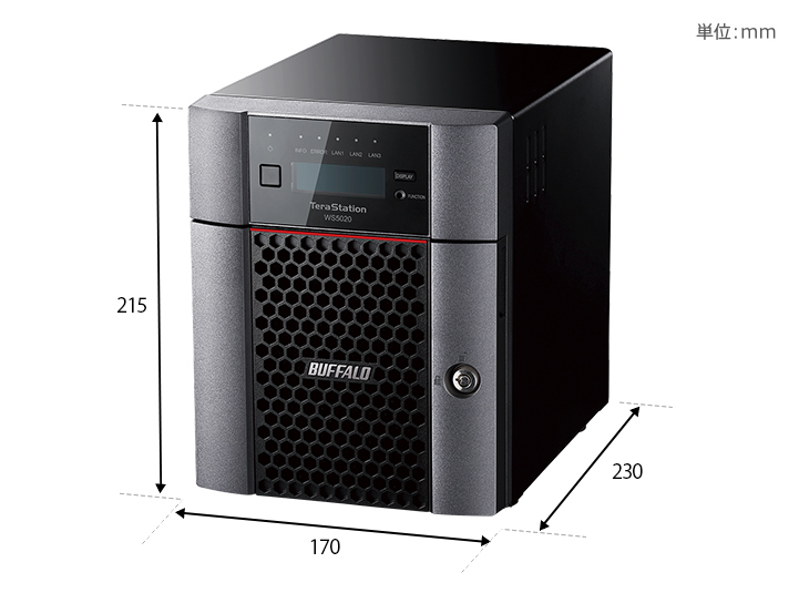 | 主な付属品 | LANケーブル(カテゴリー6A、ストレート、2m)、電源ケーブル、3極-2極変換アダプター、フロントパネル開閉用鍵 (2個) 、ケーブル抜け防止バンド、USBリカバリメディア、取扱説明書、保証書 | |