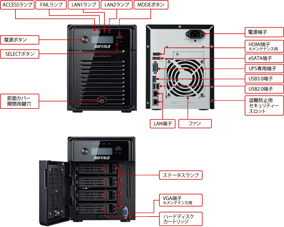 また、バッファロー製USB外付けHDD等をバックアップに使用できます。