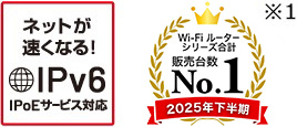 IPv6(IPoE / IPv4 over IPv6)に対応しています。