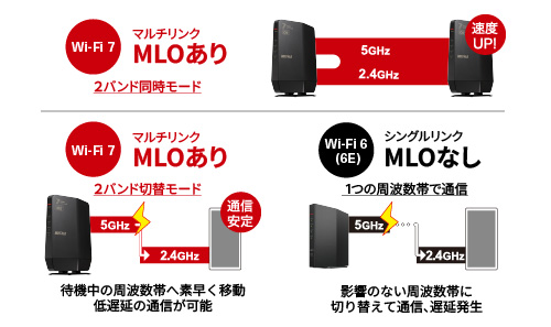 本商品はWi-Fi通信の高速化・安定化に有効な2つのMLOモードに対応しています。