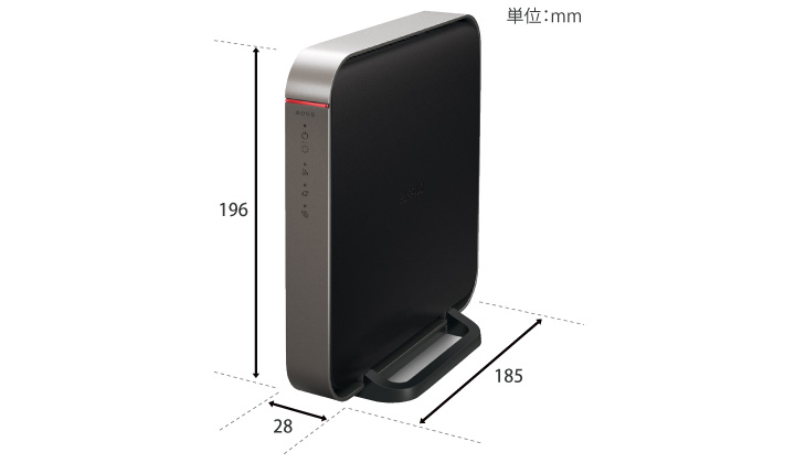 | 外形寸法(幅×高さ×奥行) | 28×185×196mm (アンテナ、スタンド含まず) ※本体のみ(突起部除く)  |