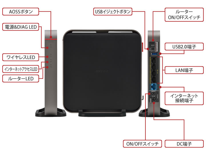 | 主な付属品 | WZR-900DHP2 | スタンド、LANケーブル(ストレート、2m)、ACアダプター、セットアップカード、取扱説明書 ※保証書はパッケージに記載  |