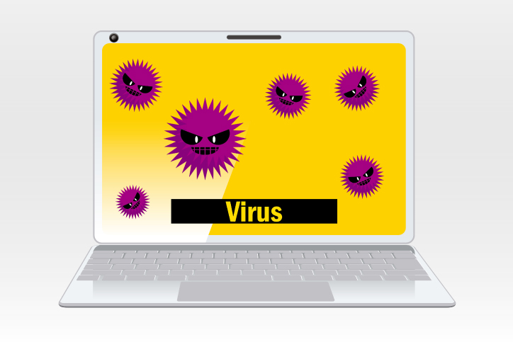 ウイルスは「コンピューターウイルス」の略称で、ほかのプログラムやファイルに自身をコピーすることで感染を広げるタイプのマルウェアです。インターネットからダウンロードしたプログラムやファイル、メールの添付ファイル、サイトの閲覧、USBメモリーなどさまざまな経路でPCに入り込み、感染を広げていきます。ウイルスに感染すると、ファイルやデータの破壊・改ざん、PCシステムの不具合、ネットワークの不具合、情報漏えいなどの被害が発生します。