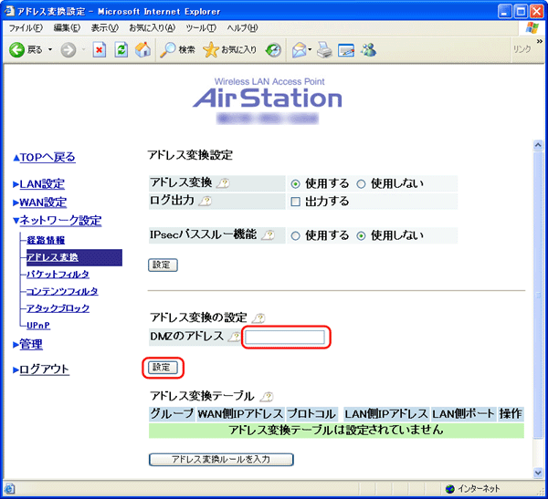 AirStationの静的IPマスカレード(アドレス変換)機能により、ネットゲームを楽しんだり、WWWサーバを公開したりできます。
